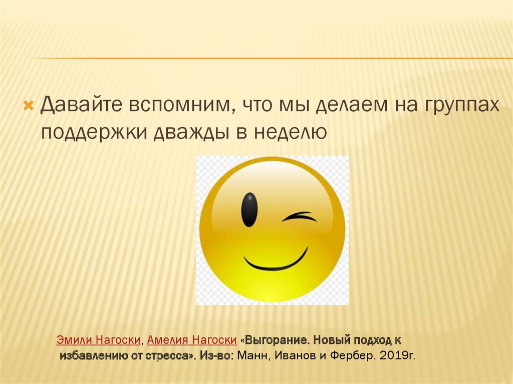Давайте вспомним, что мы делаем на группахподдержки дважды в неделю
