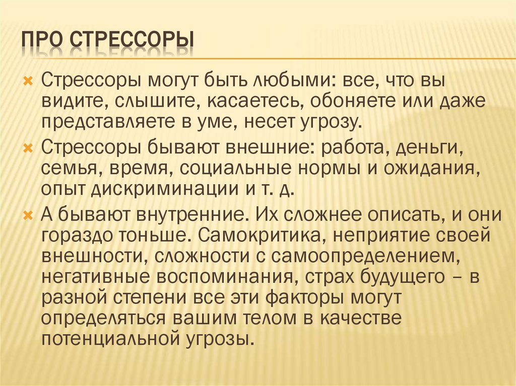 ПРО СТРЕССОРЫСтрессоры могут быть любыми: все, что вы