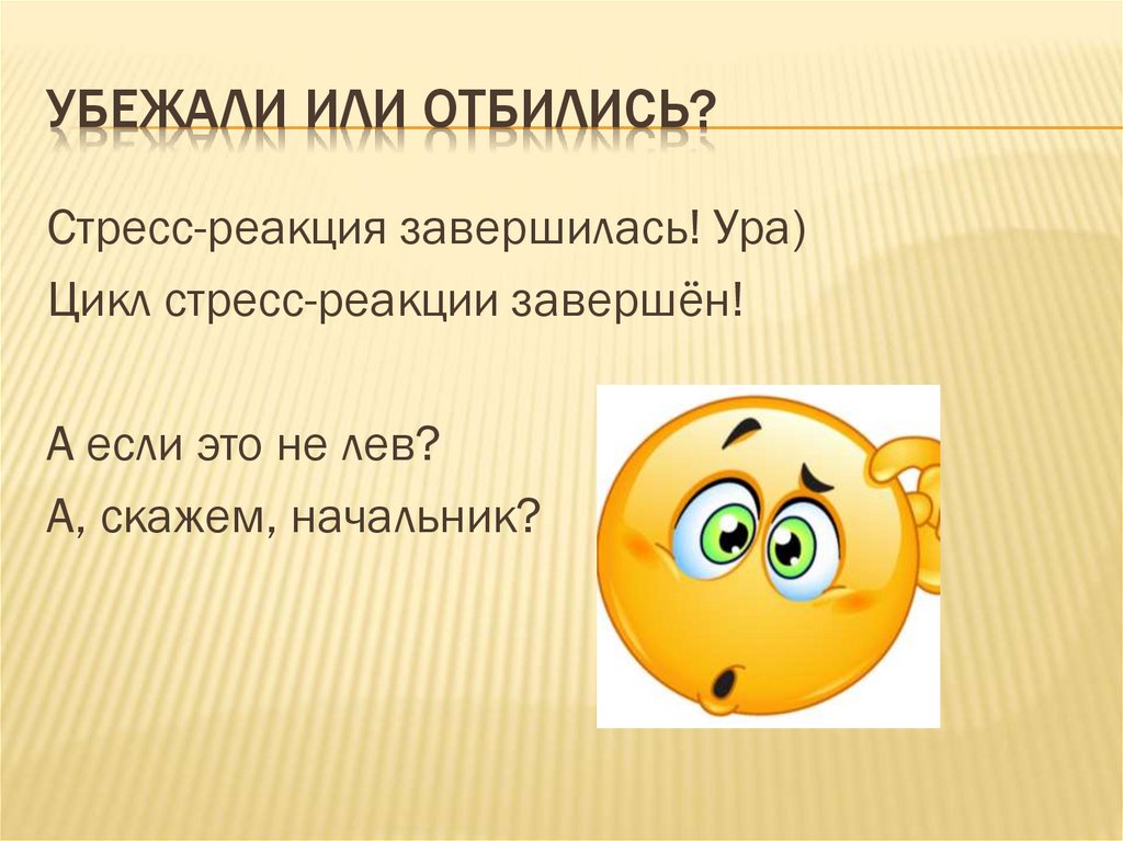 УБЕЖАЛИ ИЛИ ОТБИЛИСЬ?Стресс-реакция завершилась! Ура)