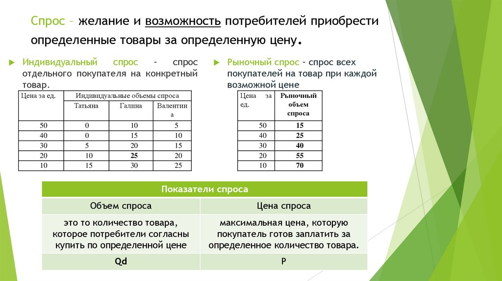 Индивидуальные объемы спроса