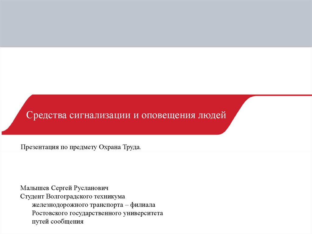Средства сигнализации и оповещения людейПрезентация по предмету Охрана Труда.