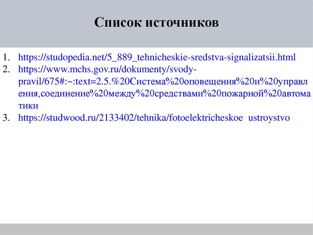 Список источников1. https://studopedia.net/5_889_tehnicheskie-sredstva-signalizatsii.html