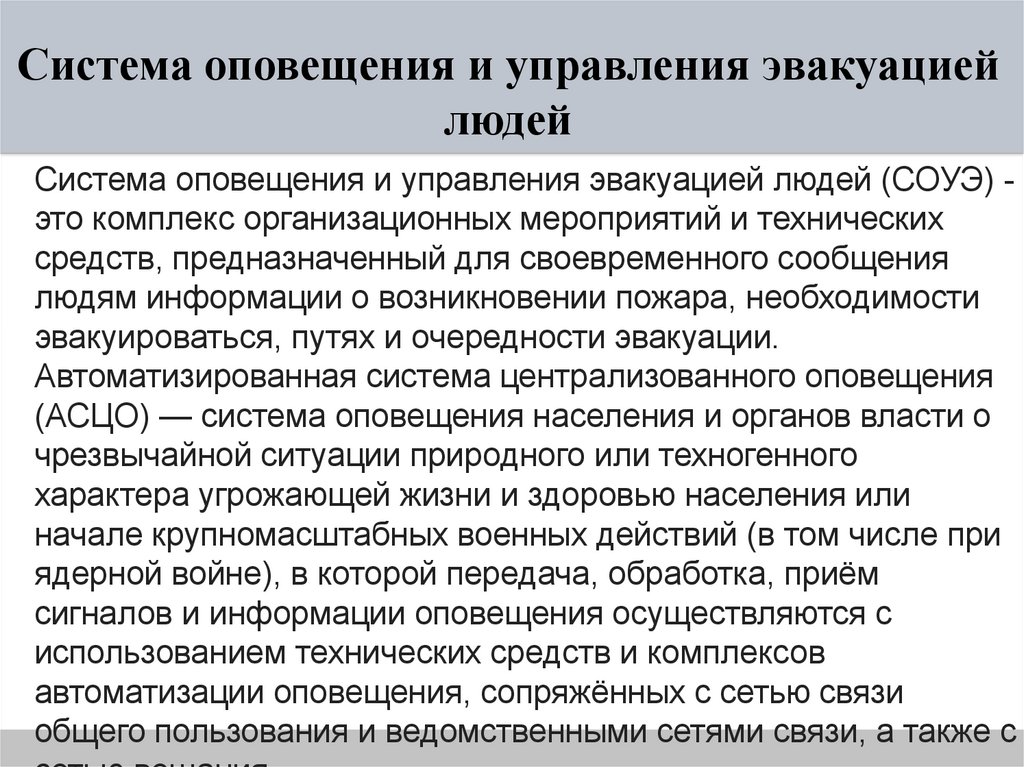 Система оповещения и управления эвакуацией людей (СОУЭ) это комплекс организационных мероприятий и технических