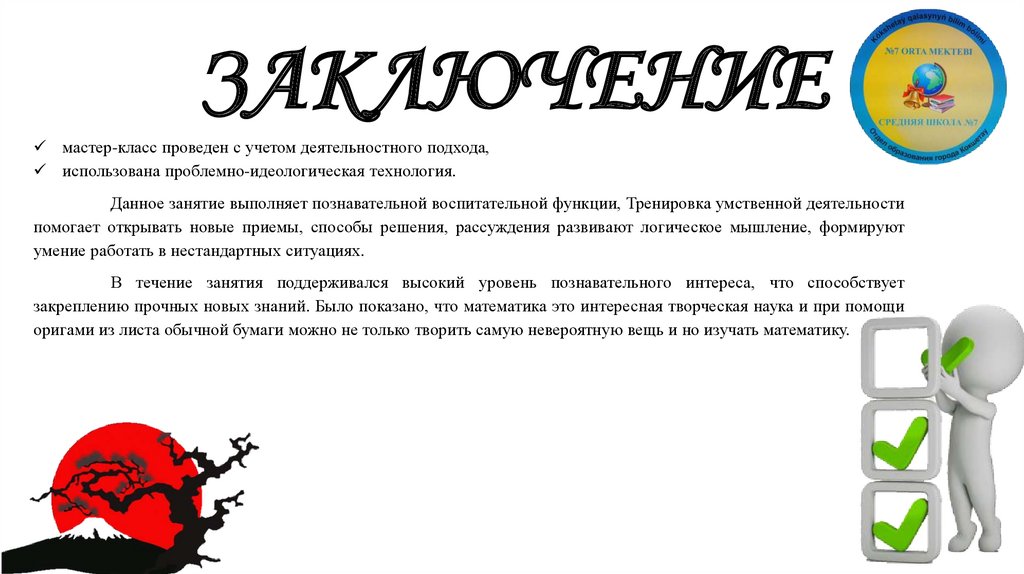 ЗАКЛЮЧЕНИЕмастер-класс проведен с учетом деятельностного подхода,