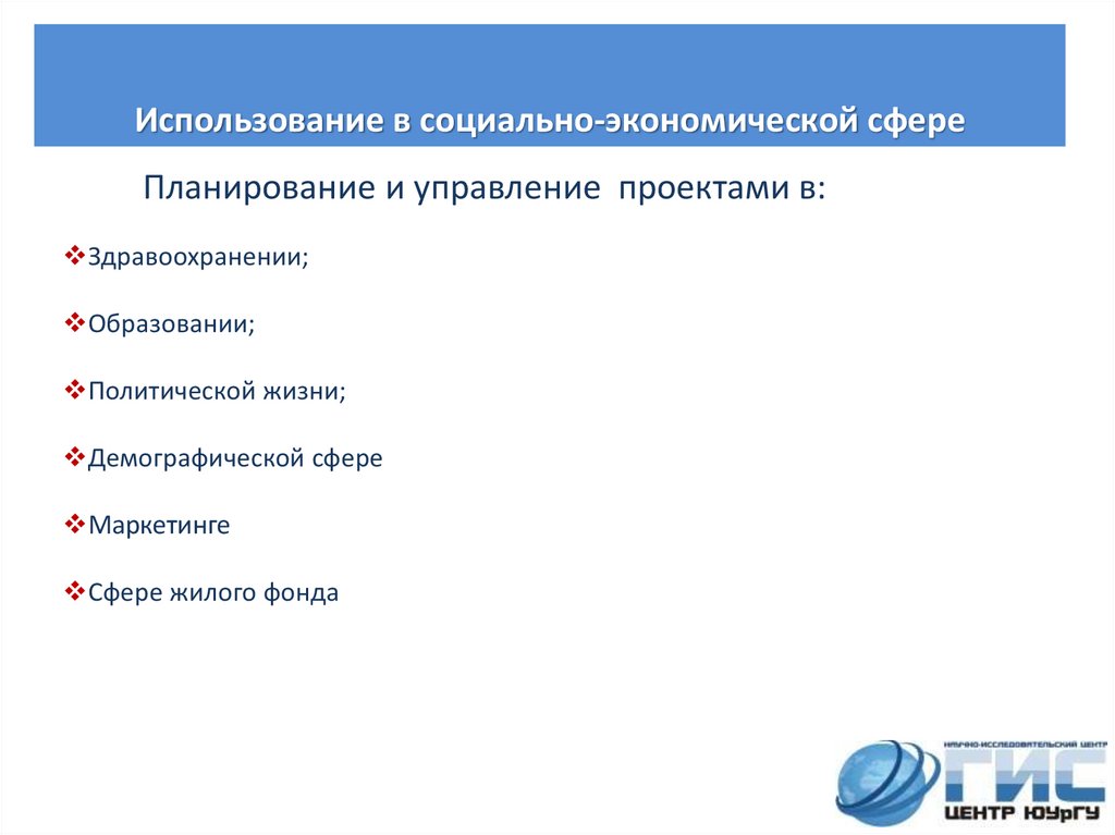 области ГИС-технологий;