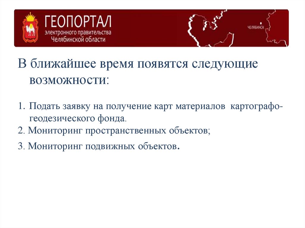 Геопортал Челябинской области «Электронноеправительство» позволяет: