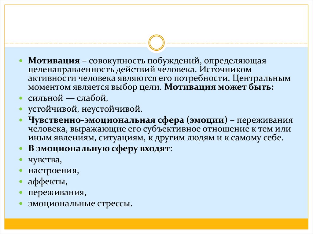 Чувственно-эмоциональная сфера (эмоции) – переживания