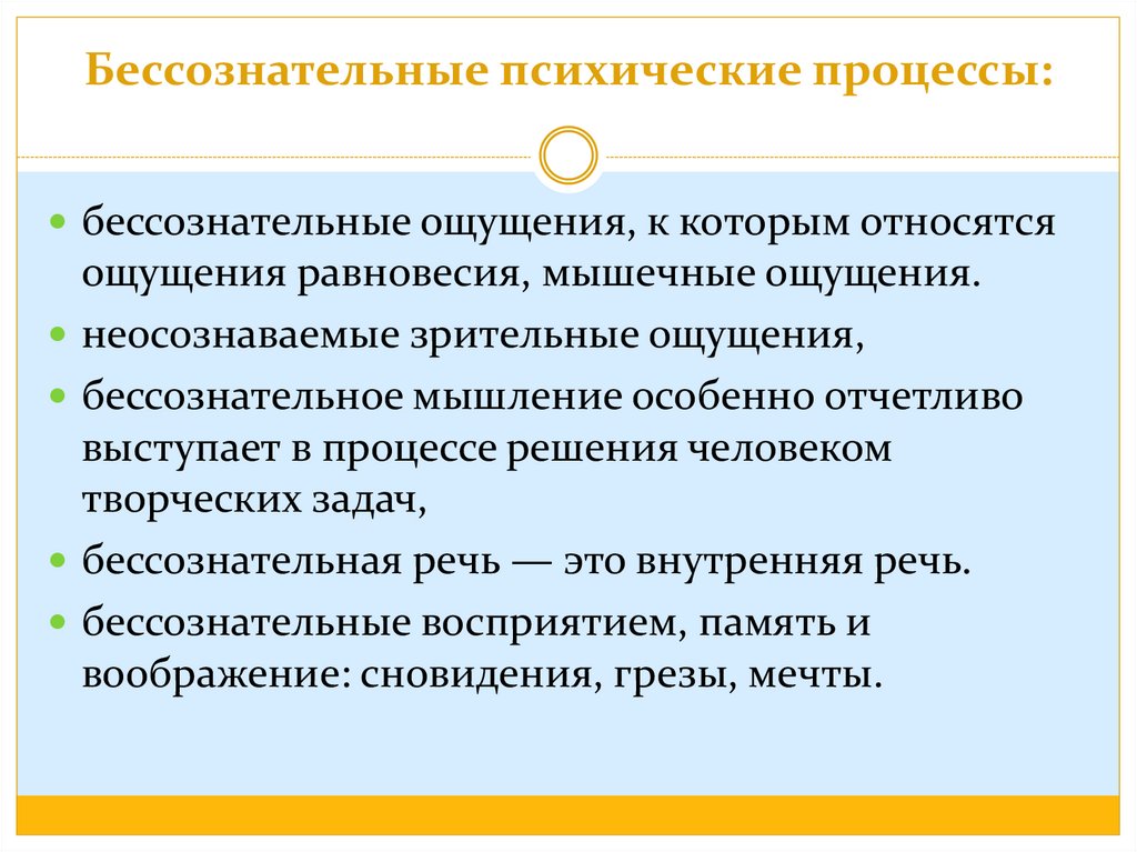 Бессознательные психические процессы:бессознательные ощущения, к которым относятся