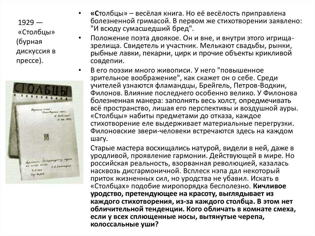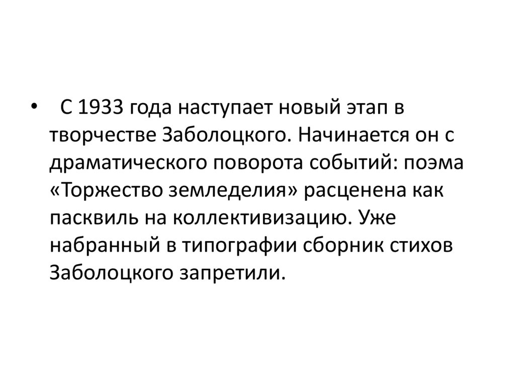 • С 1933 года наступает новый этап втворчестве Заболоцкого. Начинается он с