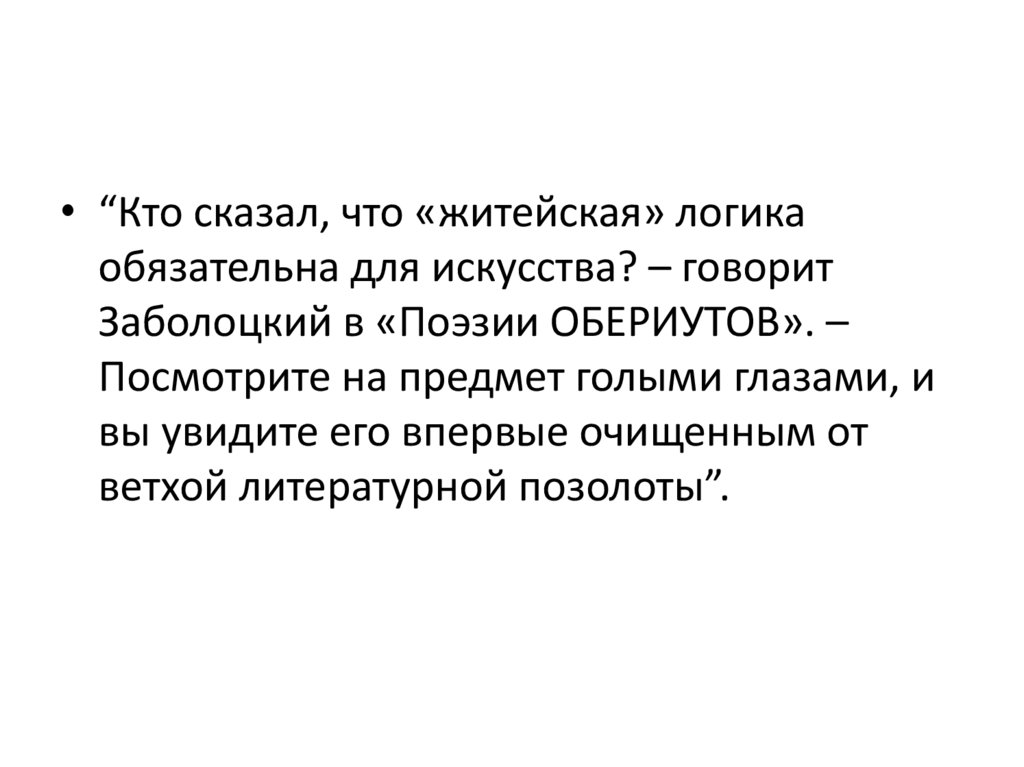 Заболоцкий в «Поэзии ОБЕРИУТОВ». –