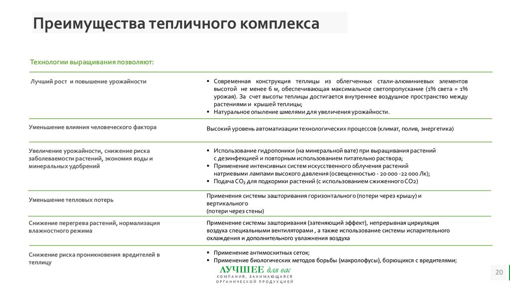 Преимущества тепличного комплексаТехнологии выращивания позволяют: