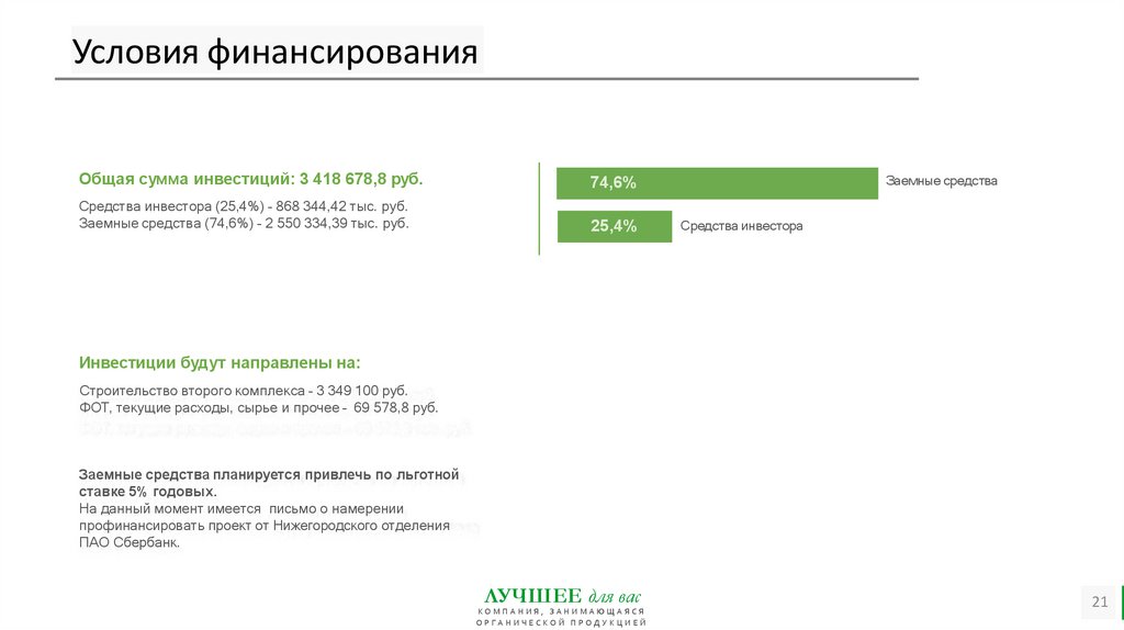 Условия финансированияОбщая сумма инвестиций: 3 418 678,8 руб.