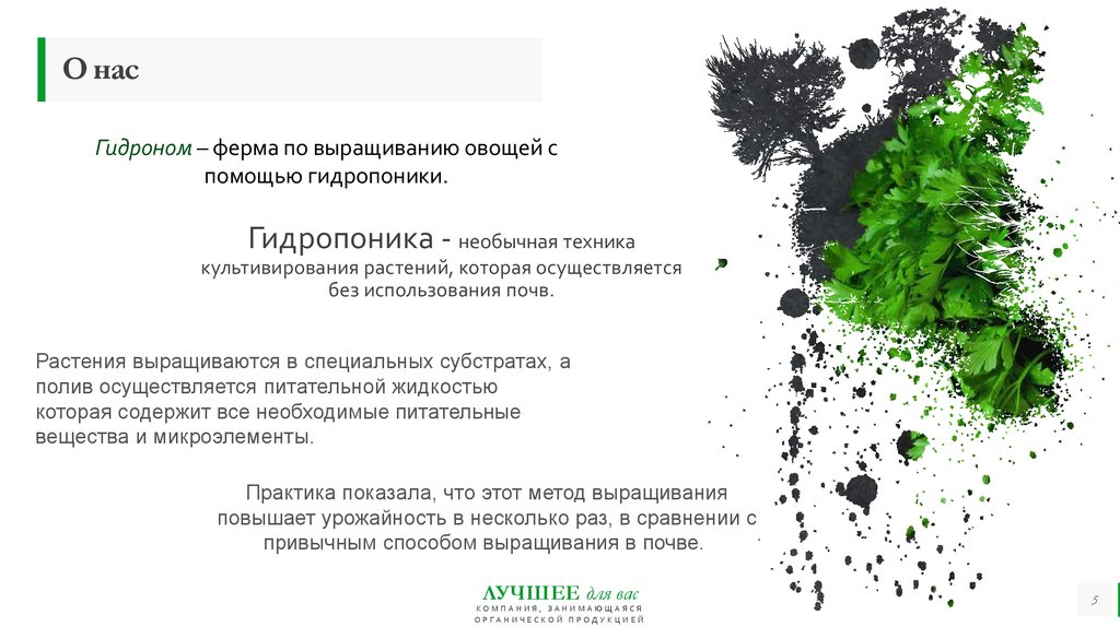 Лучшее для вас. Компания, занимающаяся органической продукцией гидроном