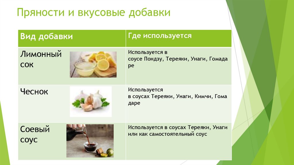 Ассортимент пряностей, вкусовых добавок, правила выбора лкогольных напитков для создания вкуса горячих соусов японской кухни