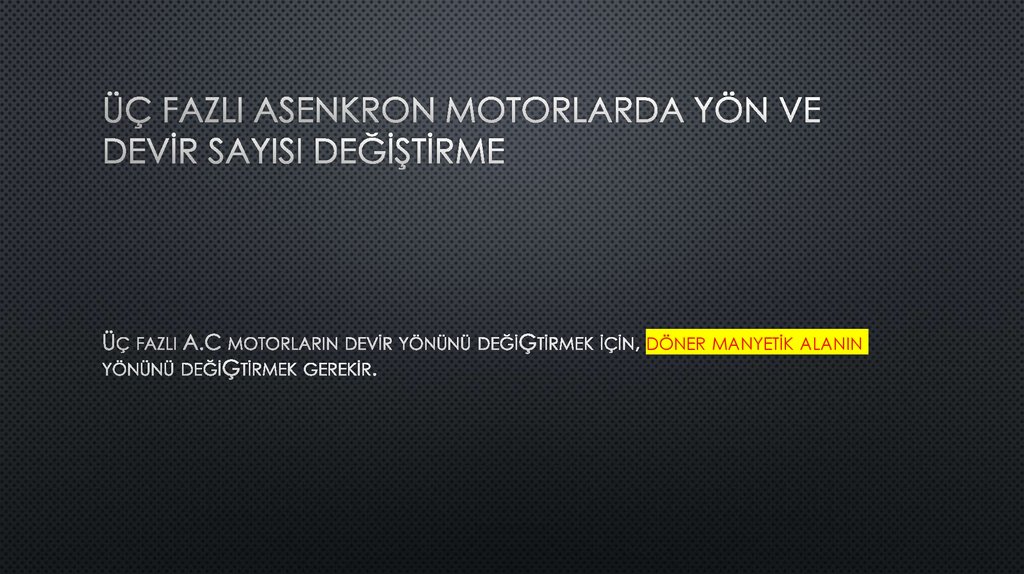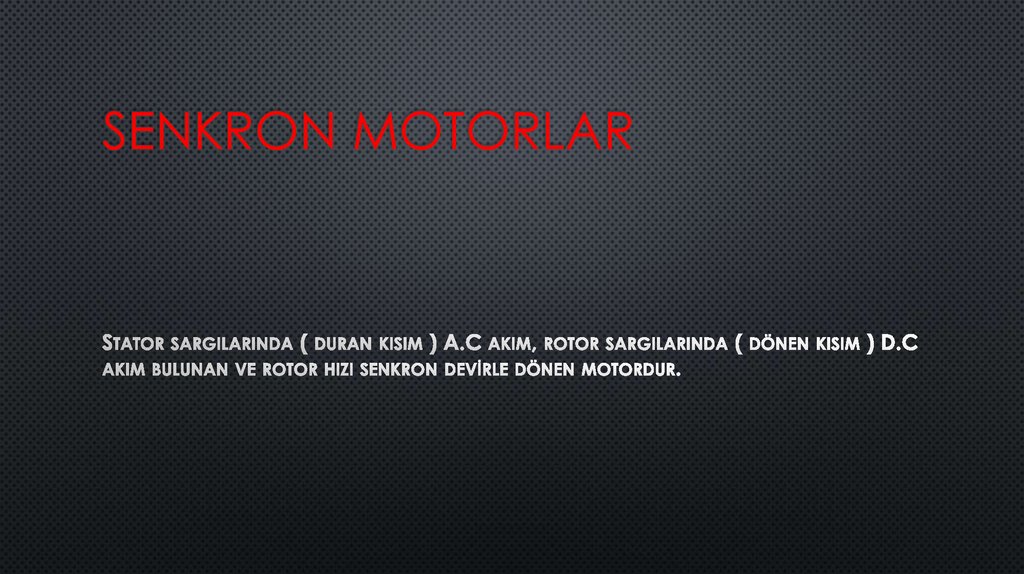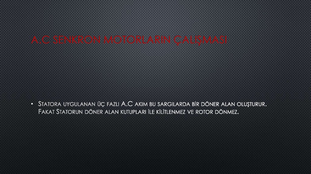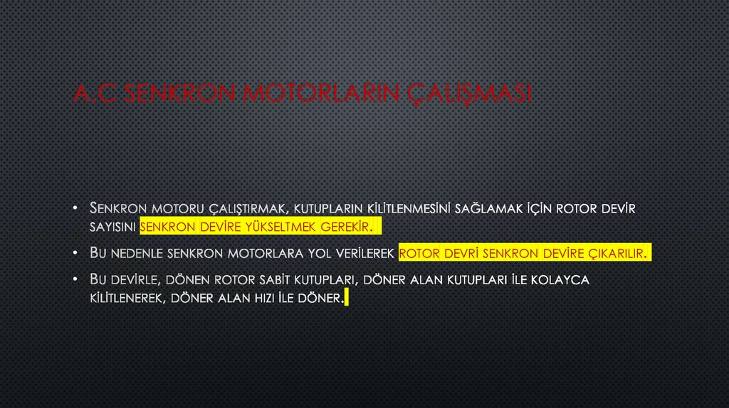 A.C SENKRON MOTORLARIN ÇALIŞMASISENKRON DEVİRE YÜKSELTMEK GEREKİR.