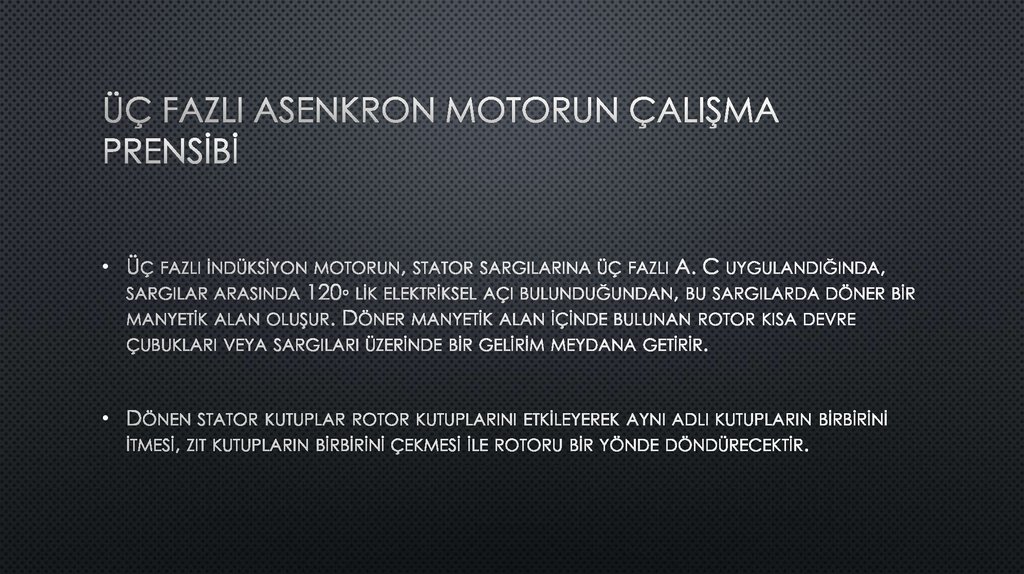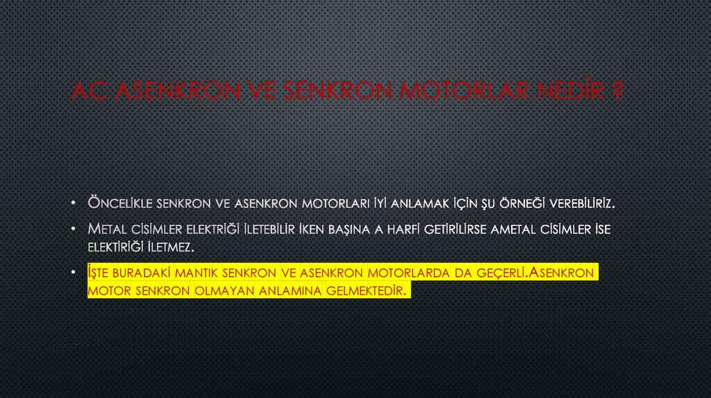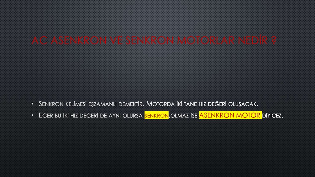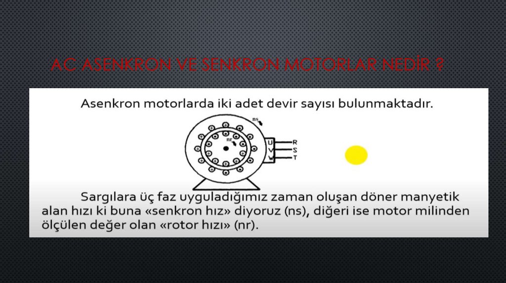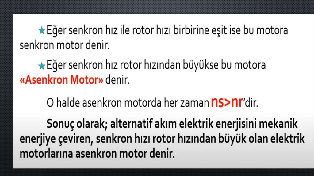 MOTOR SENKRON OLMAYAN ANLAMINA GELMEKTEDİR.