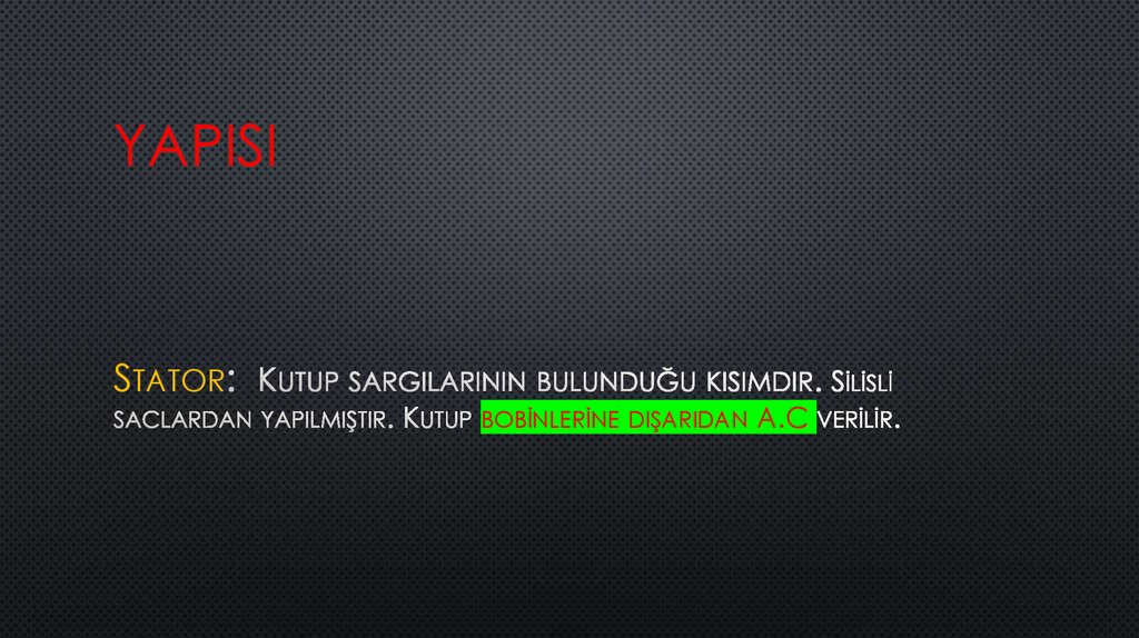 • 4- ROTOR İLE MANYETİK ALAN AYNI ANDA DÖNMEKTEDİR.BU YÜZDEN SENKRON