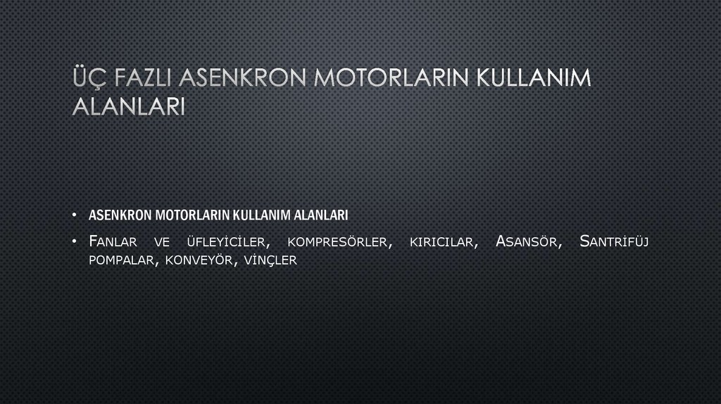 • ASENKRON MOTORLARIN KULLANIM ALANLARI• FANLAR