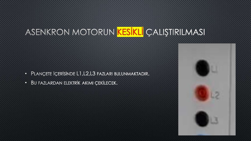 • 2- L1 FAZINDAN ÖNCE KABLO YARDIMIYLA ELEKTRİĞİ ALIYORUZ VE JOG BUTONUN