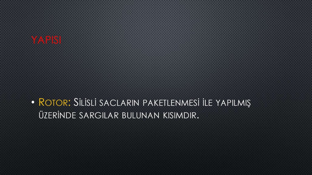 YAPISI• ROTOR: SİLİSLİ SACLARIN PAKETLENMESİ İLE YAPILMIŞ