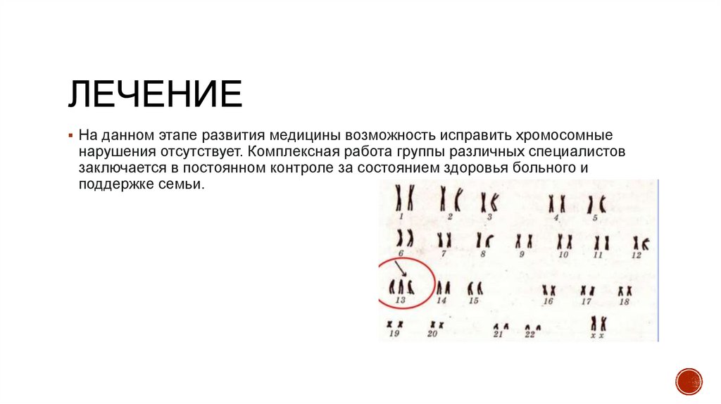 ЛЕЧЕНИЕНа данном этапе развития медицины возможность исправить хромосомные