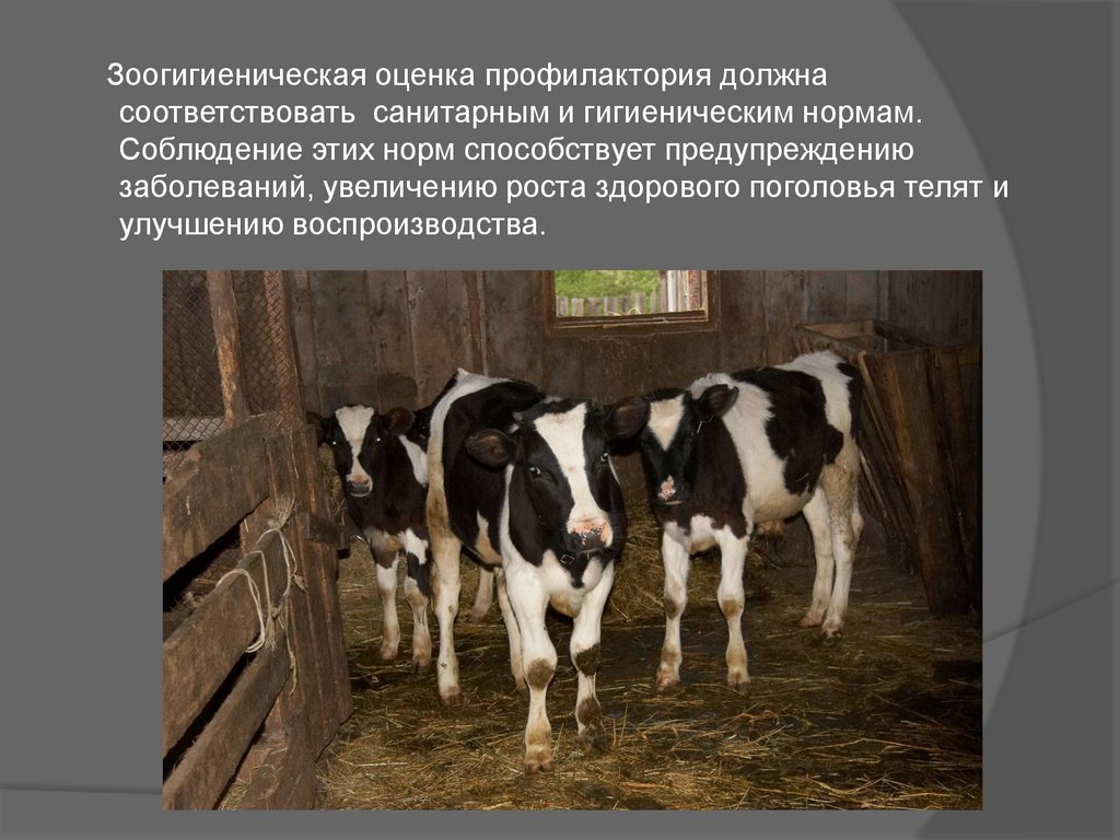 Зоогигиеническая оценка профилактория должнасоответствовать санитарным и гигиеническим нормам.