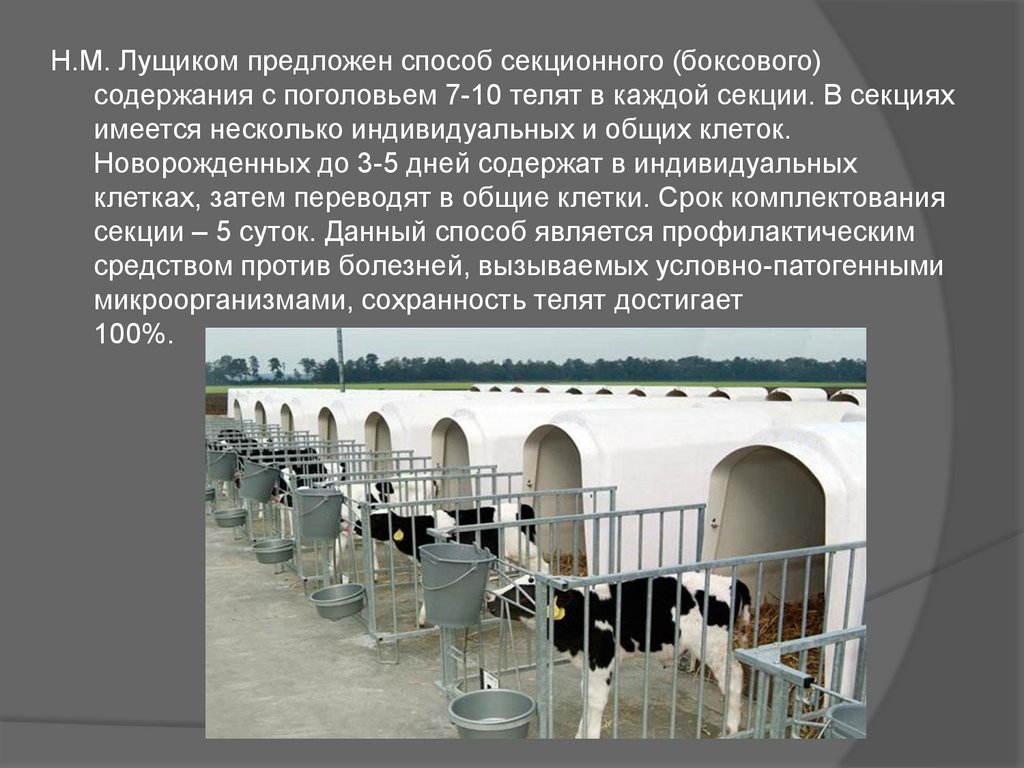 коровами кормилицами); содержание телят в сменных секциях