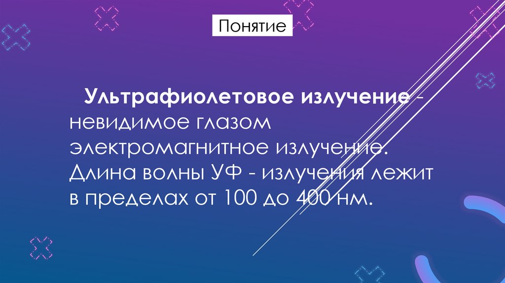 ПонятиеУльтрафиолетовое излучение невидимое глазом