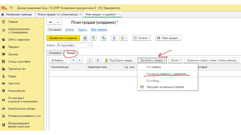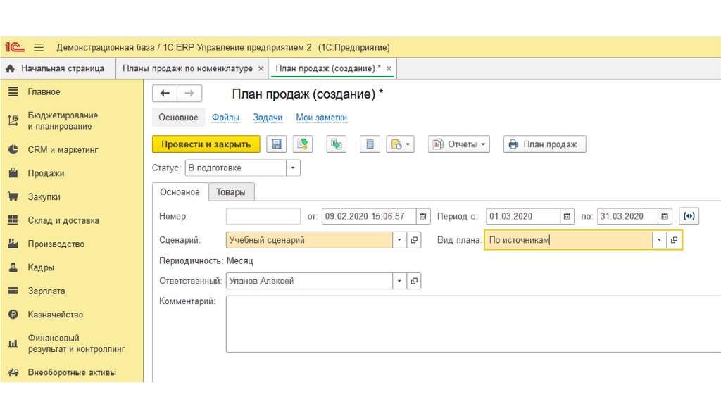 Для создания плана продажсоздадим
