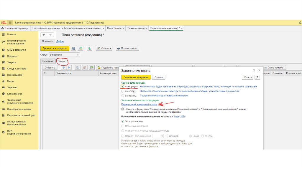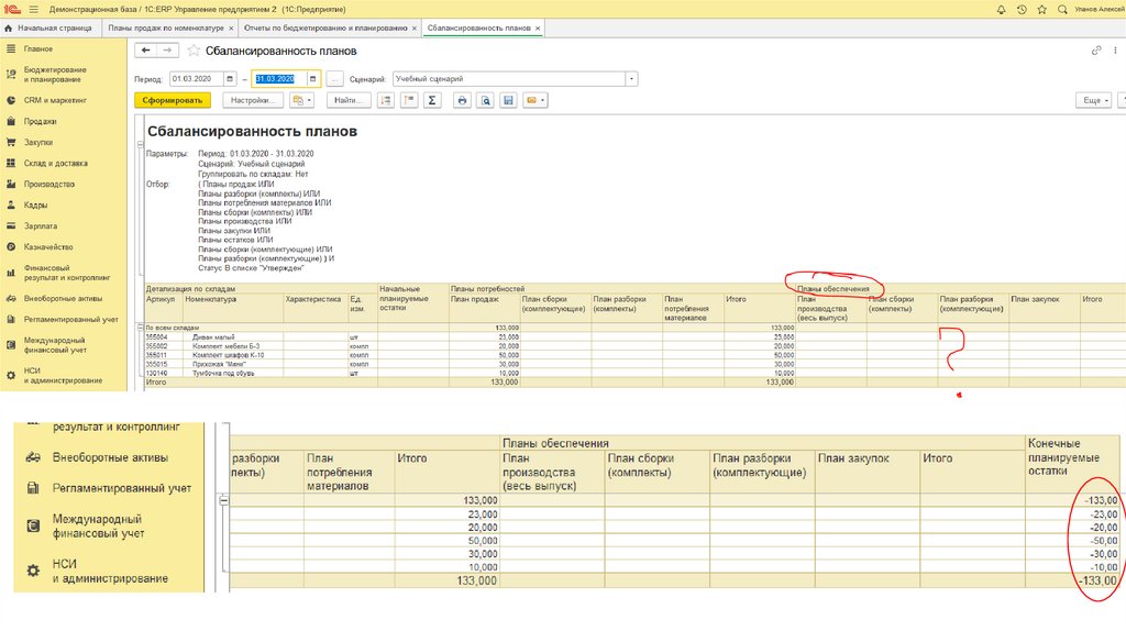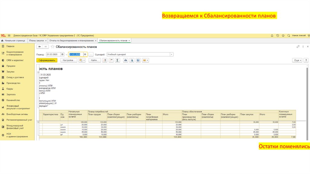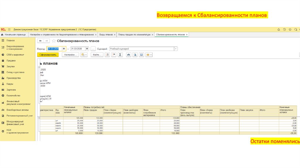 Возвращаемся к Сбалансированности плановОстатки поменялись