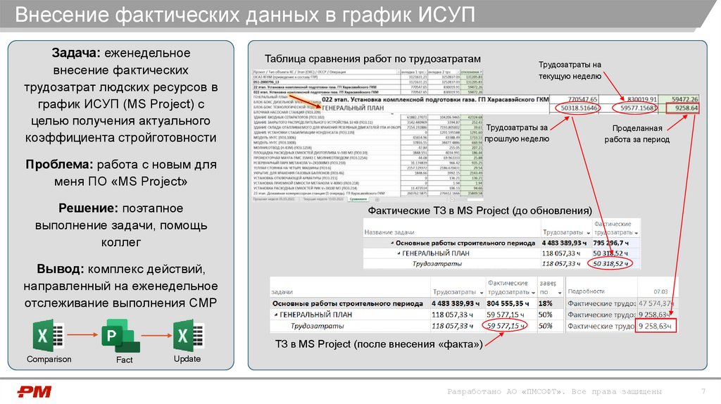 Внесение фактических данных в график ИСУПЗадача: еженедельное
