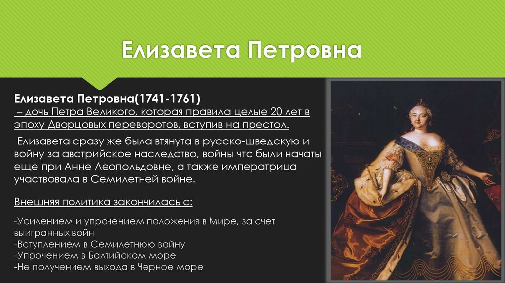 Елизавета ПетровнаЕлизавета Петровна(1741-1761)