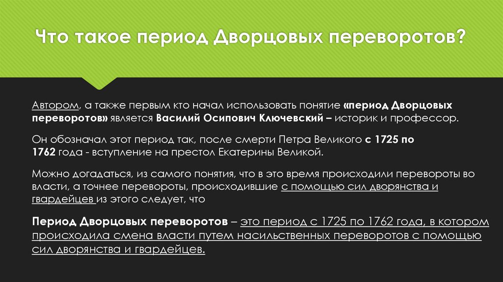 Что такое период Дворцовых переворотов?Автором, а также первым кто начал использовать понятие «период Дворцовых