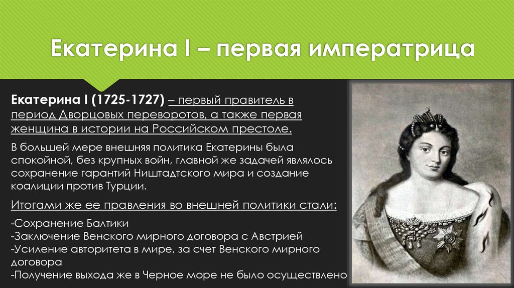 Екатерина I – первая императрицаЕкатерина I (1725-1727) – первый правитель в