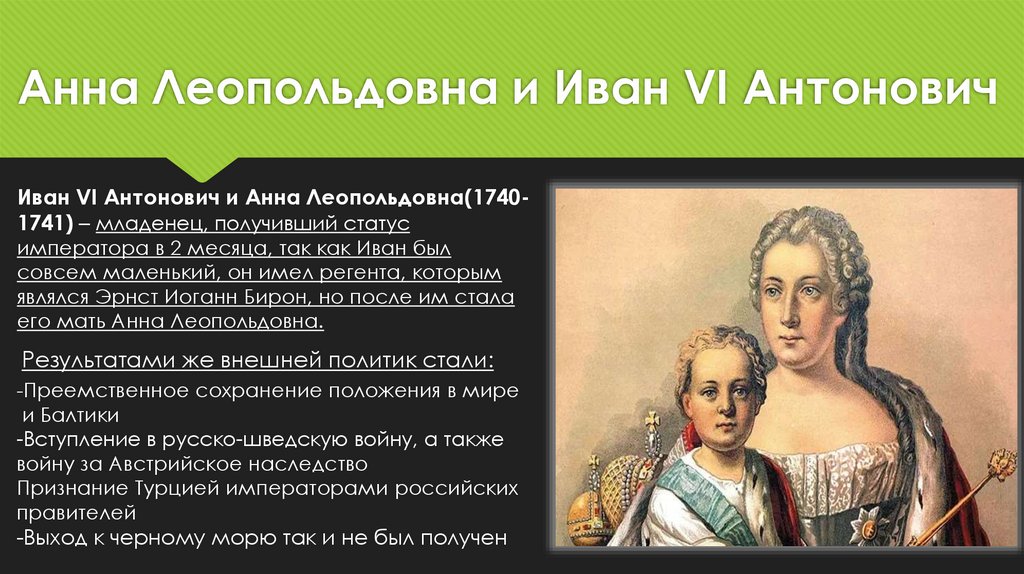 Анна Леопольдовна и Иван VI АнтоновичИван VI Антонович и Анна Леопольдовна(17401741) – младенец, получивший статус