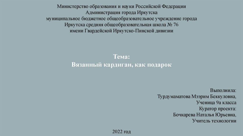 Министерство образования и науки Российской ФедерацииАдминистрация города Иркутска