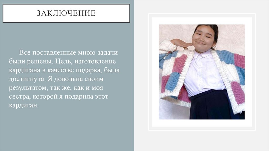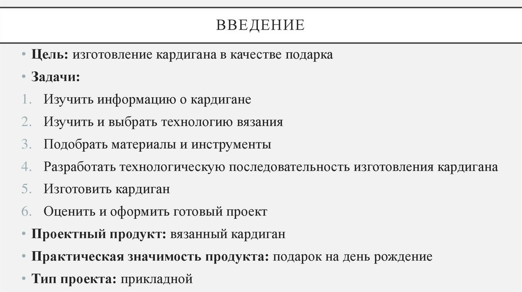 ВВЕДЕНИЕ• Цель: изготовление кардигана в качестве подарка