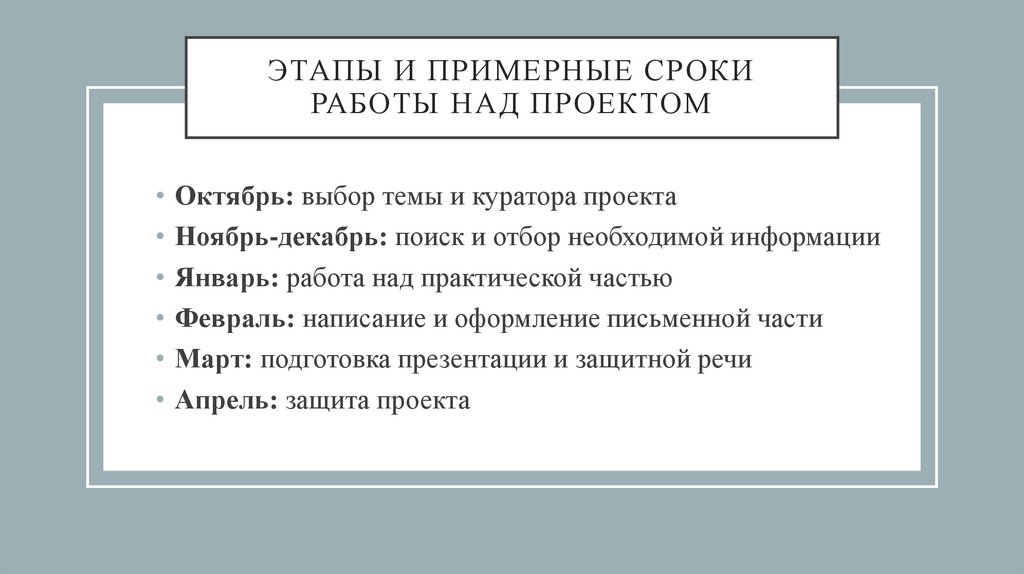 ЭТАПЫ И ПРИМЕРНЫЕ СРОКИРАБОТЫ НАД ПРОЕКТОМ