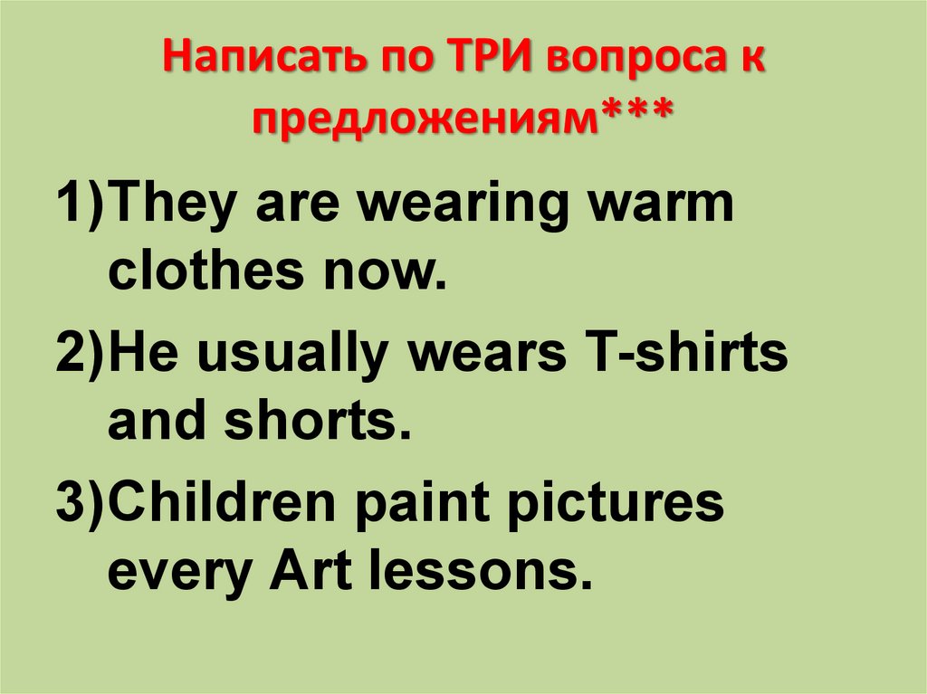 Написать по ТРИ вопроса кпредложениям***