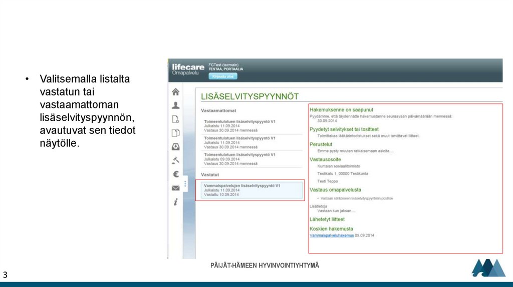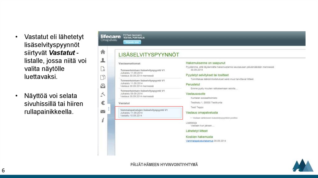 Lisäselvityspyynnöt• Saapuneet valikosta pääsee