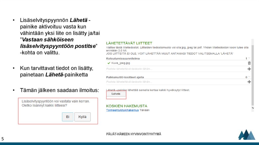 • Lisäselvityspyynnön Lähetä painike aktivoituu vasta kunvähintään yksi liite on lisätty ja/tai