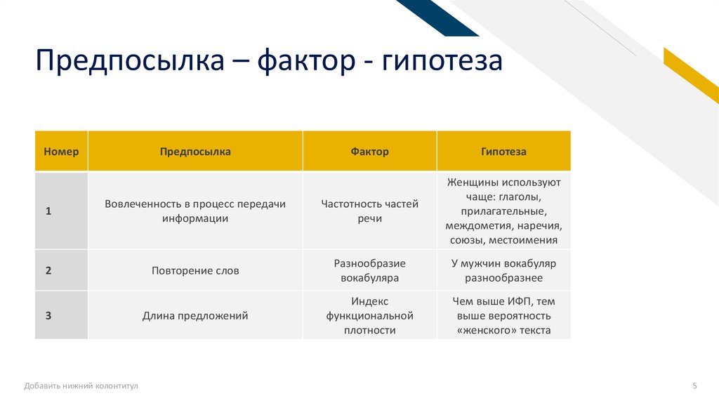FRПредпосылка – фактор - гипотеза