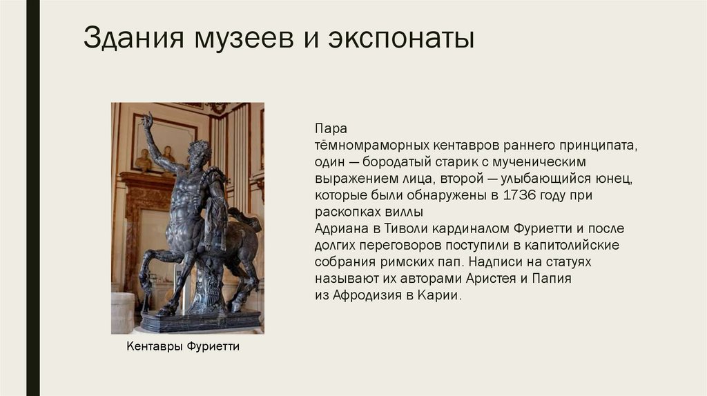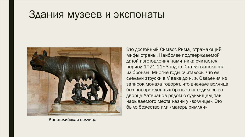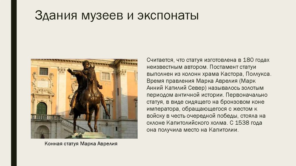 Здания музеев и экспонатыСчитается, что статуя изготовлена в 180 годах