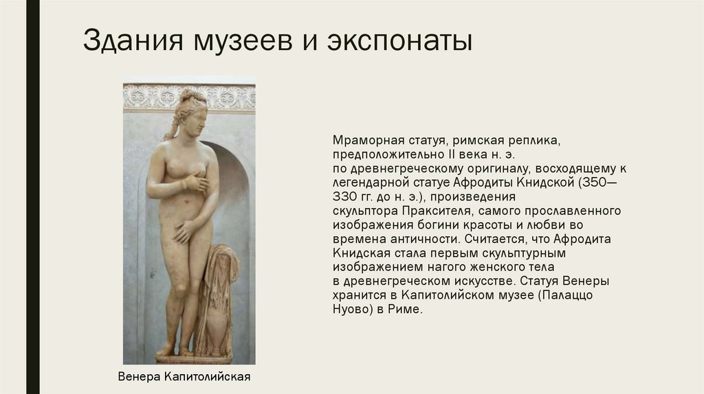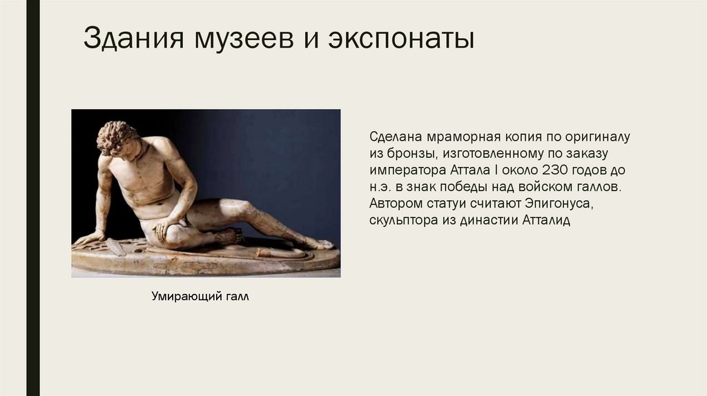 Здания музеев и экспонатыСделана мраморная копия по оригиналу