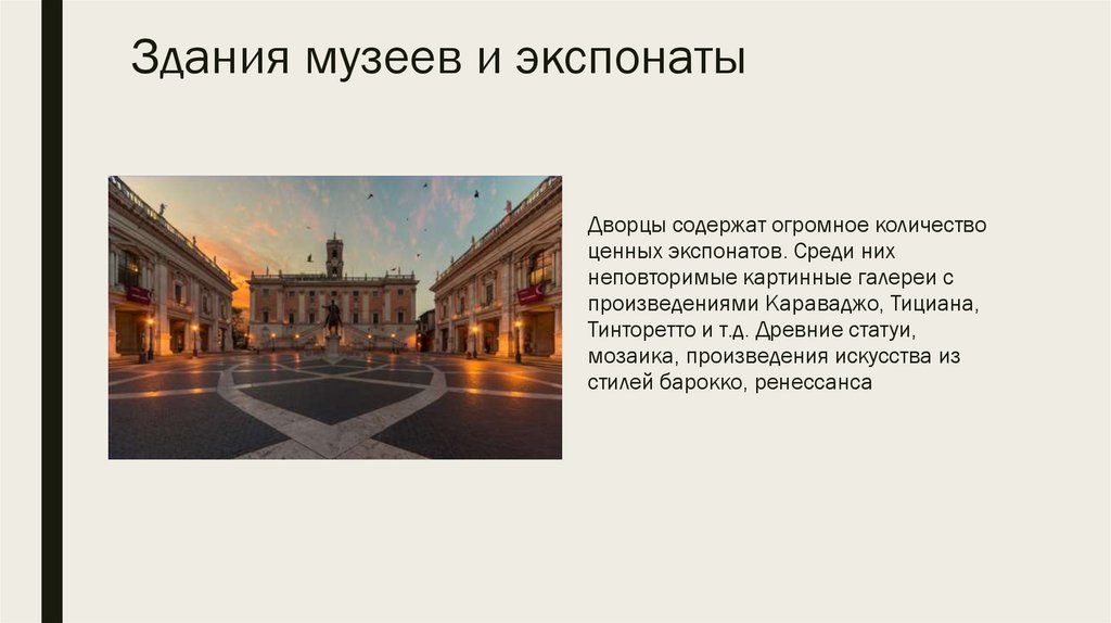 Здания музеев и экспонатыДворцы содержат огромное количество