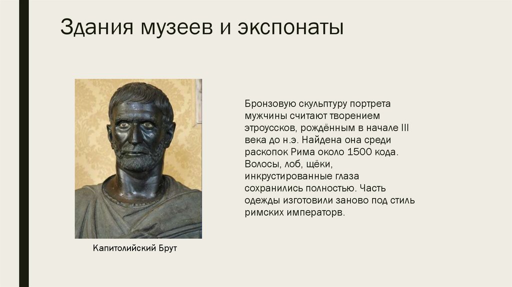 Здания музеев и экспонатыБронзовую скульптуру портрета