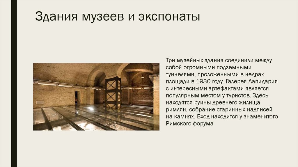 Здания музеев и экспонатыЭто достойный Символ Рима, отражающий