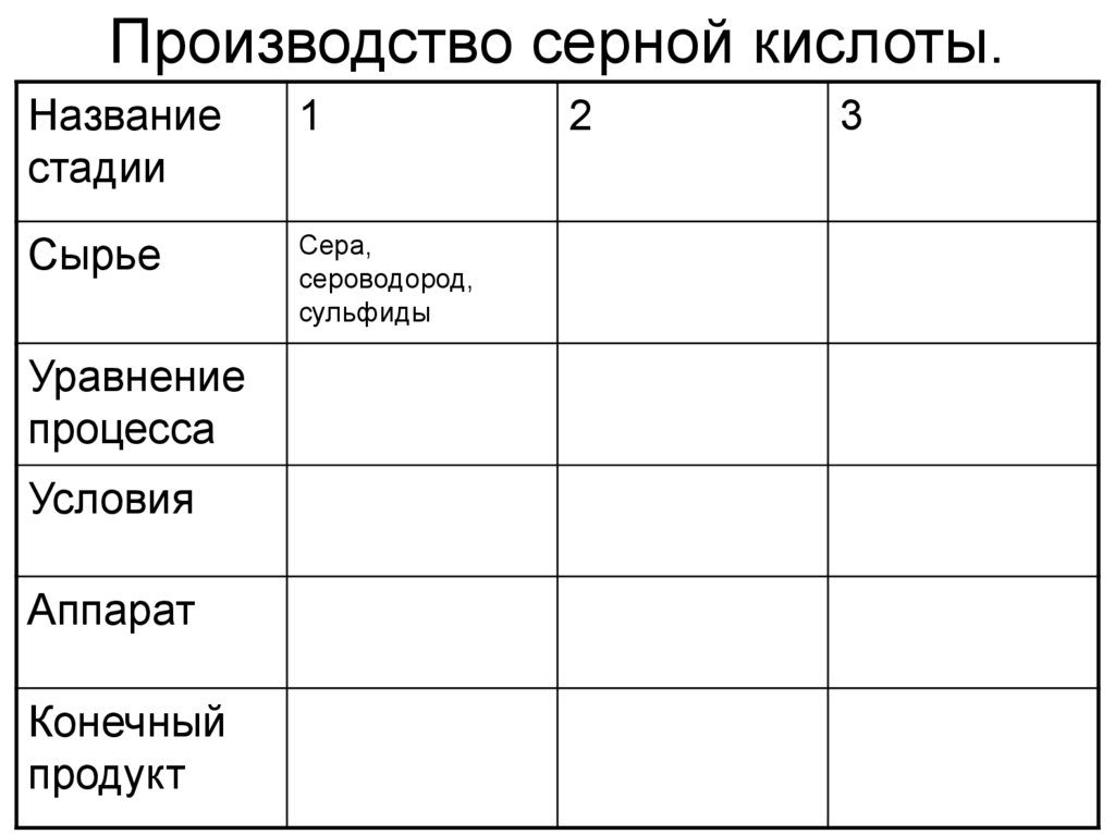 Производство серной кислоты.