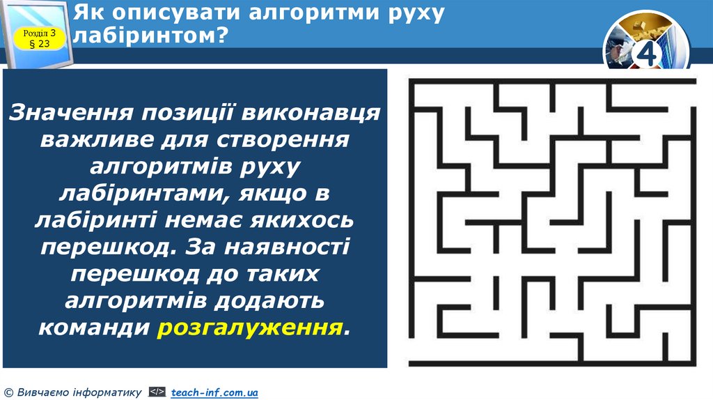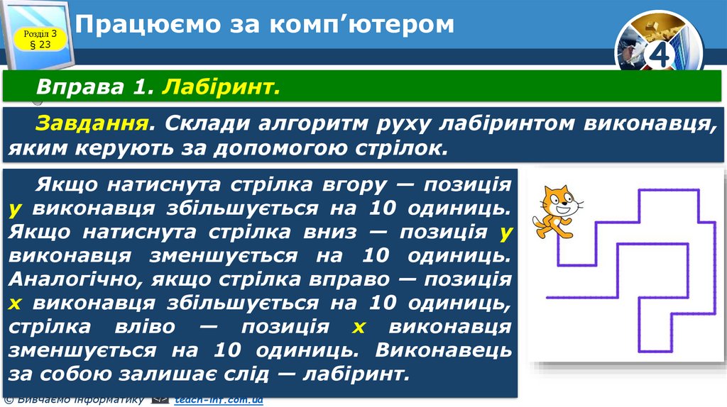 Завдання. Склади алгоритм руху лабіринтом виконавця,