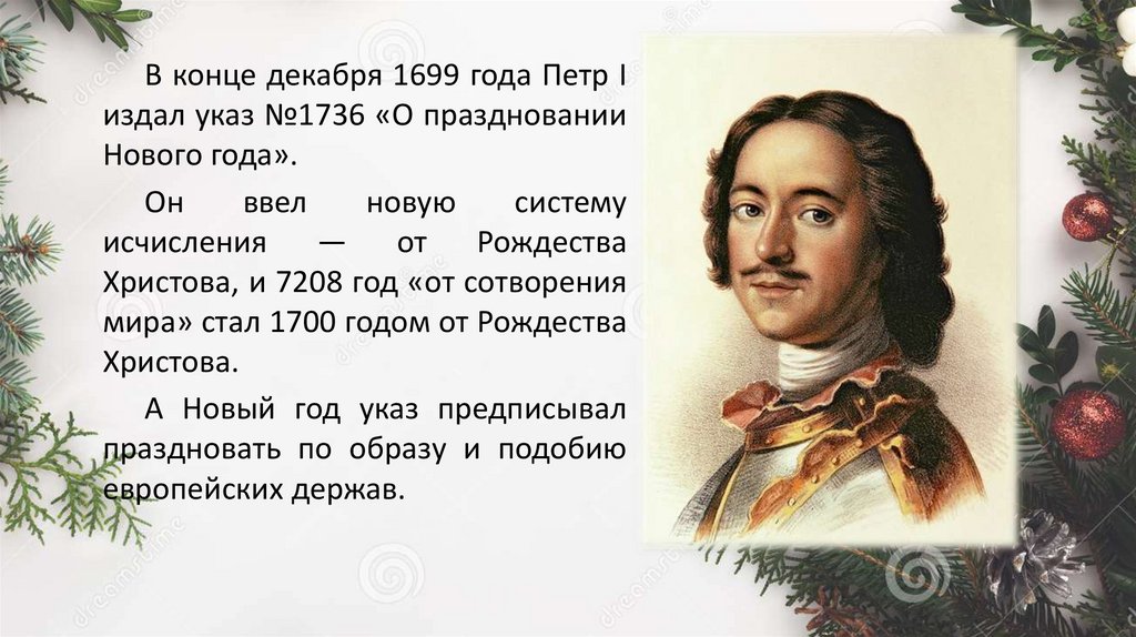 В конце декабря 1699 года Петр Iиздал указ №1736 «О праздновании